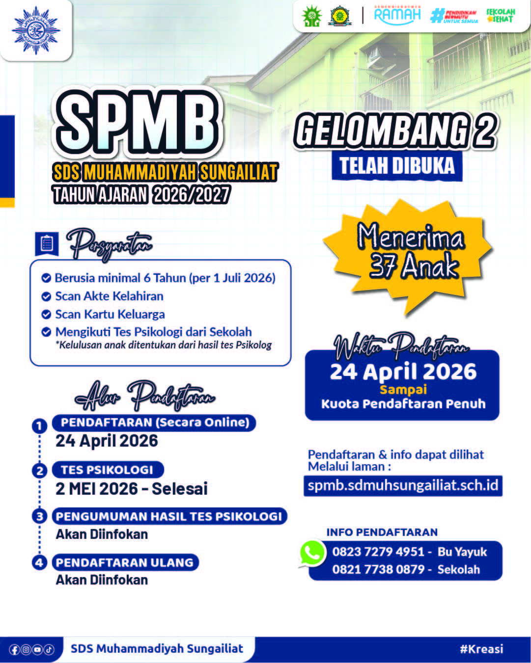 PENDAFTARAN SPMB SDS MUHAMMADIYAH SUNGAILIAT TAHUN AJARAN 2026/2027 | GELOMBANG 2